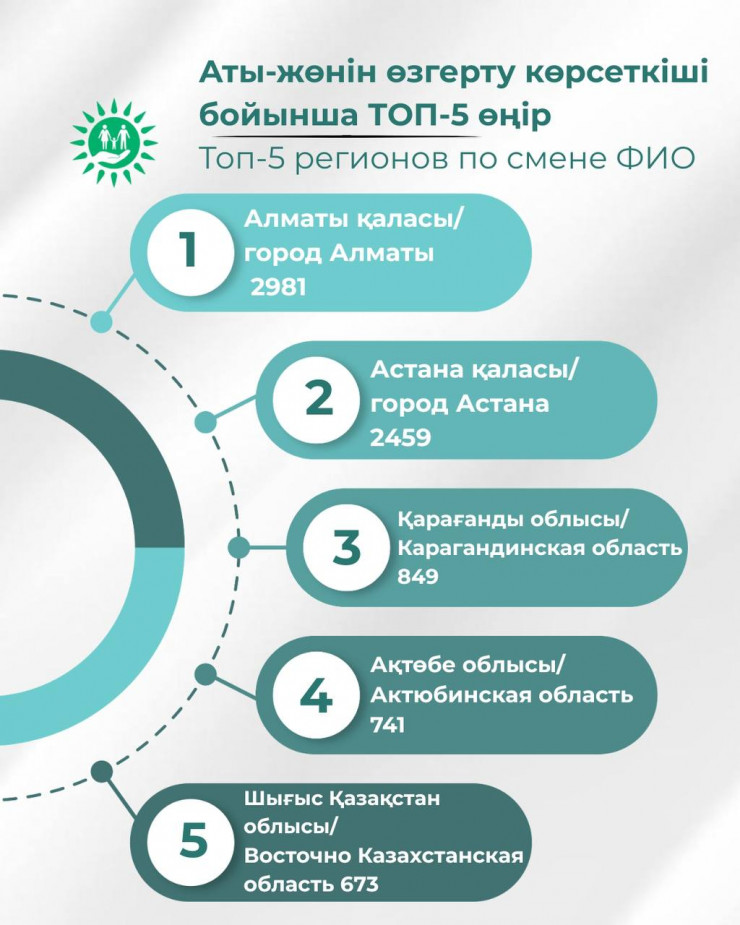 Алматы тұрғындары аты-жөнін жиі өзгертетін болған. Бұл туралы "Азаматтарға арналған үкімет" мемлекеттік корпорациясы мәлімдеді, — деп хабарлайды Massaget.kz тілшісі.