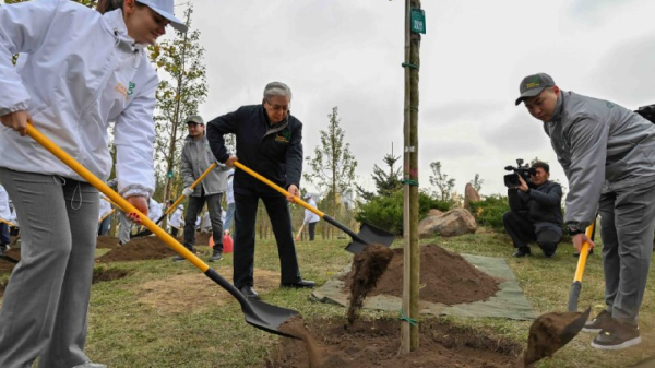 Президент Астана қаласындағы Ботаникалық саябақта ерікті және белсенді жастармен бірге ағаш екті, деп хабарлайды inbusiness.kz сайты.