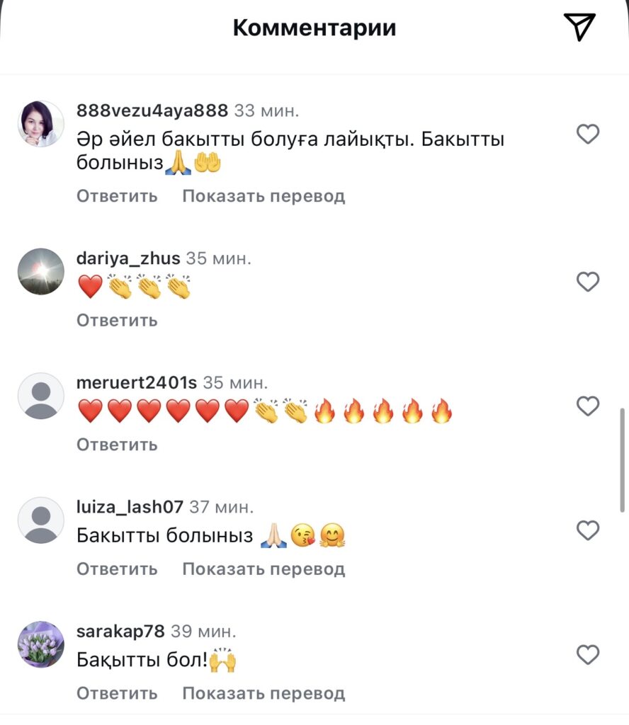 Ақ көйлек киіп түскен суретте “Бақытты болайық бәріміз. Сен де, мен де, біз де”, — деп жазба жарияланған.