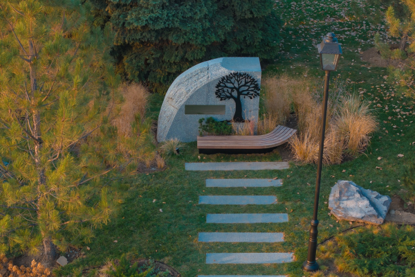Саябақта граниттен , металдан және ағаштан жасалған ерекше стелла орнатылды.
